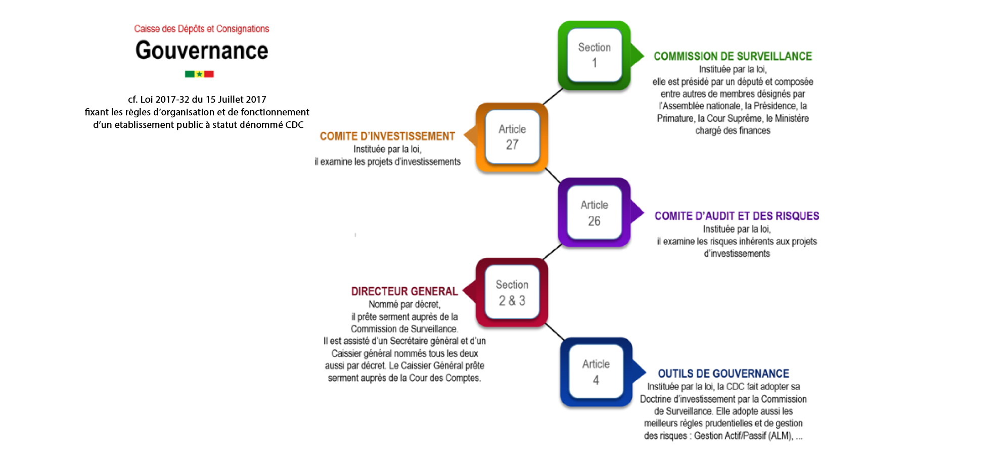 La CDC du Sénégal est placée sous un cadre légal clair (Loi 2017-32 du 15 juillet 2017) et s’appuie sur une gouvernance solide qui garantit transparence, sécurité et efficacité dans la gestion des ressources confiées.